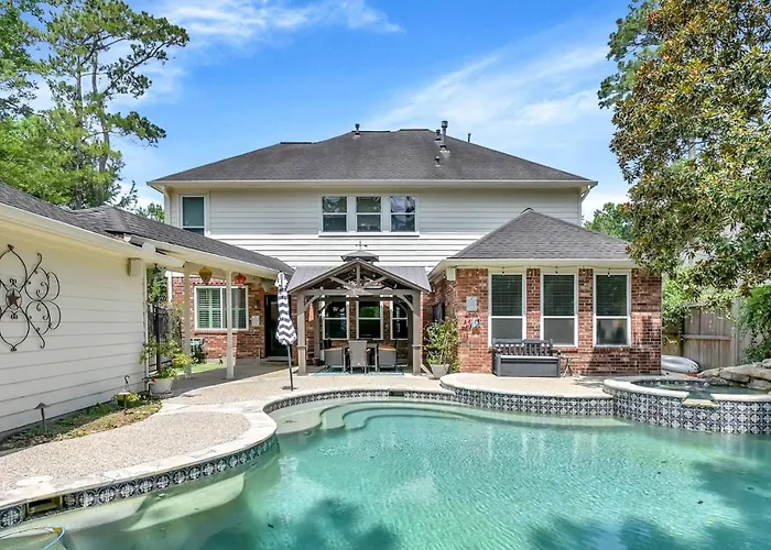 **Welcome to Taupewood Pl, a luxurious retreat nestled in the heart of The Woodlands, Texas.** Located just 45 kilometers away from the bustling George Bush Houston Airport, this elegant villa offers the perfect escape for both leisure and business travelers. Experience a tranquil atmosphere surrounded by lush landscapes, yet within easy reach of the city's vibrant attractions.